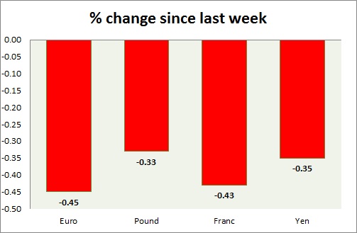 Strength meter (since last week) – Euro -0.45%, Franc -0.43%, Yen -0.35%, GBP -0.33%