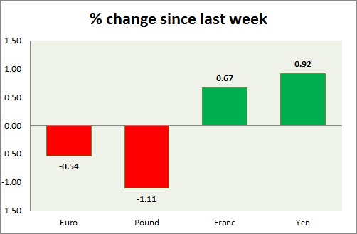 Strength meter (since last week) – Euro -0.54%, Franc +0.67%, Yen +0.92%, GBP -1.11%