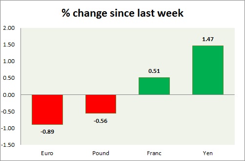 Strength meter (since last week) – Euro -0.89%, Franc +0.51%, Yen +1.47%, GBP -0.56%