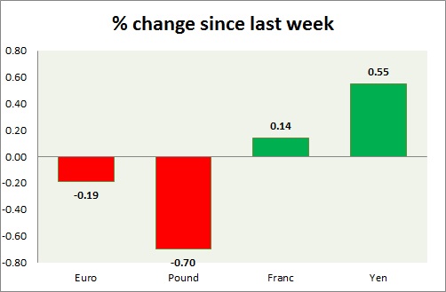 Strength meter (since last week) – Euro -0.19%, Franc +0.14%, Yen +0.55%, GBP -0.70%
