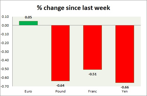 Strength meter (since last week) – Euro +0.05%, Franc -0.51%, Yen -0.66%, GBP -0.64%
