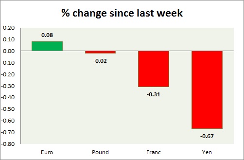 Strength meter (since last week) – Euro +0.08%, Franc -0.31%, Yen -0.67%, GBP -0.02%