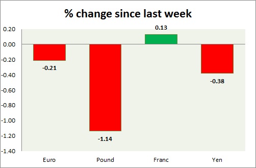 Strength meter (since last week) – Euro +0.23%, Franc +0.51%, Yen -0.24%, GBP -0.18%