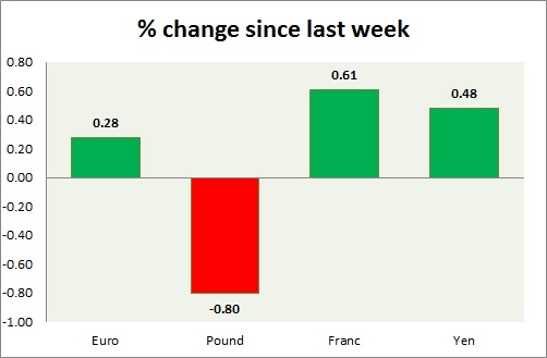 Strength meter (since last week) – Euro +0.28%, Franc -0.20%, Yen -0.52%, GBP -0.80%