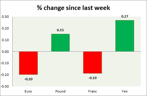 Strength meter (since last week) – Euro -0.20%, Franc -0.19%, Yen +0.27%, GBP +0.15%