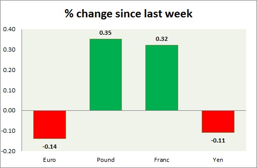Strength meter (since last week) – Euro -0.14%, Franc +0.32%, Yen -0.11%, GBP +0.35%