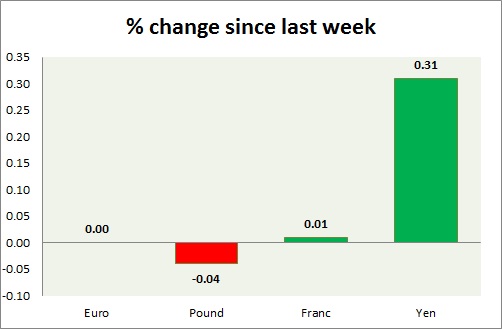 Strength meter (since last week) – Euro -0.00%, Franc +0.01%, Yen +0.31%, GBP -0.04%
