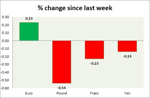 Strength meter (since last week) – Euro +0.13%, Franc +1.45%, Yen +0.36%, GBP +1.05%