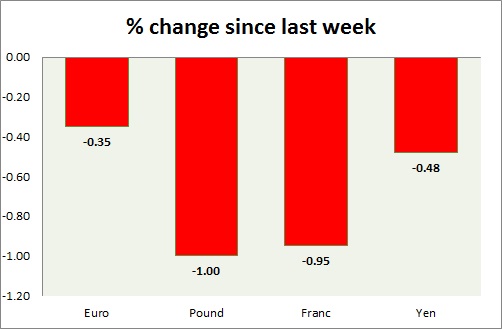 Strength meter (since last week) – Euro -0.35%, Franc -0.95%, Yen -0.48%, GBP -1.00%