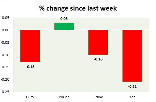 Strength meter (since last week) – Euro -0.13%, Franc -0.10%, Yen -0.21%, GBP +0.03%