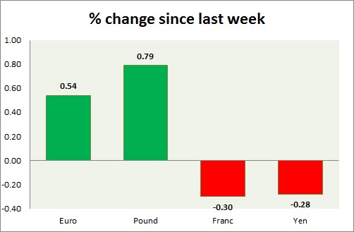 Strength meter (since last week) – Euro +0.54%, Franc -0.30%, Yen -0.28%, GBP +0.79%
