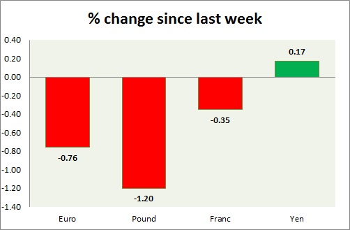 Strength meter (since last week) – Euro -0.76%, Franc -0.35%, Yen +0.17%, GBP -1.20%