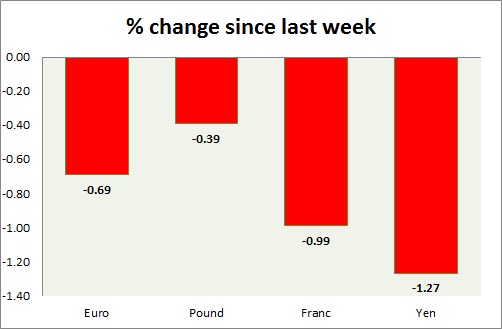 Strength meter (since last week) – Euro -0.69%, Franc -0.99%, Yen -1.27%, GBP -0.39%