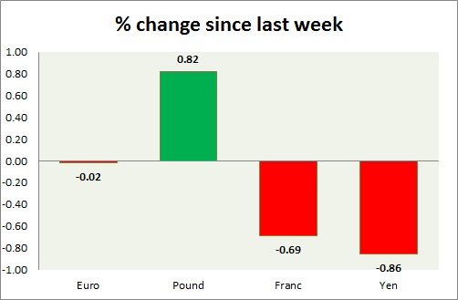 Strength meter (since last week) – Euro -0.02%, Franc -0.69%, Yen -0.86%, GBP +0.82%