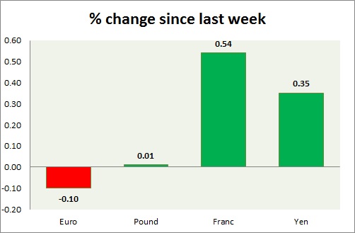 Strength meter (since last week) – Euro -0.10%, Franc +0.54%, Yen +0.35%, GBP +0.01%