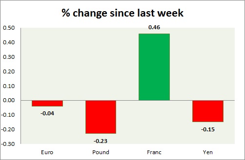 Strength meter (since last week) – Euro -0.04%, Franc +0.46%, Yen -0.15%, GBP -0.23%