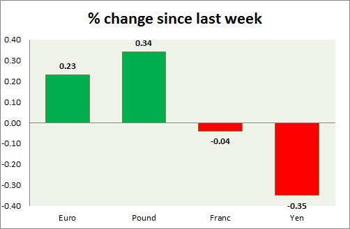 Strength meter (since last week) – Euro +0.23%, Franc -0.04%, Yen -0.35%, GBP +0.34%