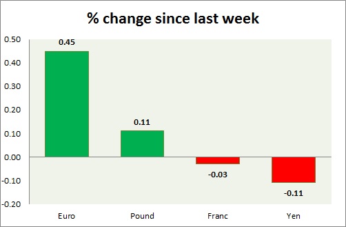 Strength meter (since last week) – Euro +0.45%, Franc -0.03%, Yen -0.11%, GBP +0.11%