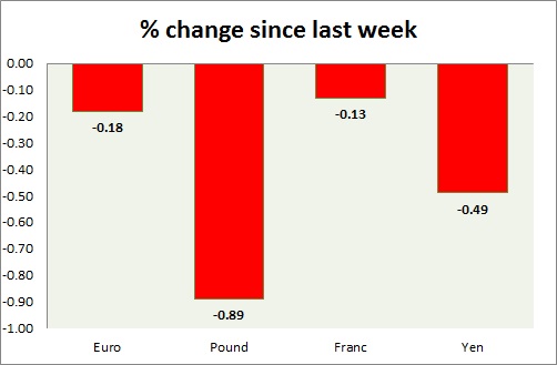Strength meter (since last week) – Euro +0.69%, Franc +0.52%, Yen +0.63%, GBP +0.15%