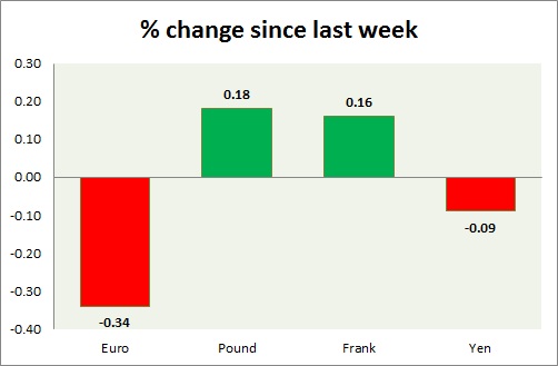 Strength meter (since last week) - Euro -0.34%, Franc +0.16%, Yen -0.09%, GBP +0.18%