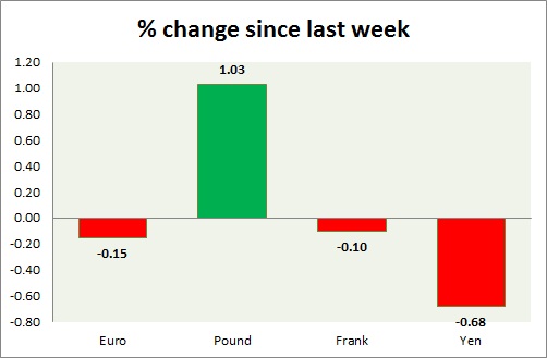 Strength meter (since last week) - Euro -0.15%, Franc -0.10%, Yen -0.68%, GBP +1.03%