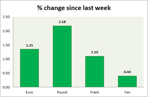 Strength meter (since last week) - Euro +1.35%, Franc +1.10%, Yen +0.40%, GBP +2.18%
