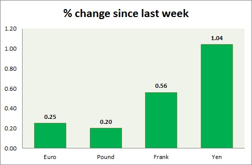 Strength meter (since last week) - Euro -1.72%, Franc -1.98%, Yen -1.01%, GBP -0.85%