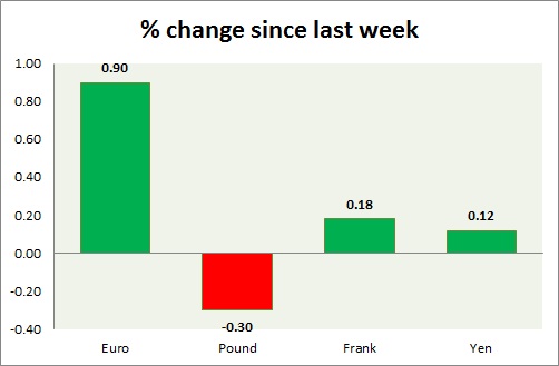Strength meter (since last week) - Euro +0.90%, Franc +0.18%, Yen +0.12%, GBP -0.30%