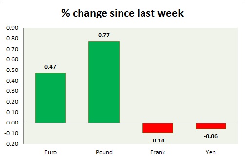 Strength meter (since last week) - Euro +0.47%, Franc -0.10%, Yen -0.06%, GBP +0.77%