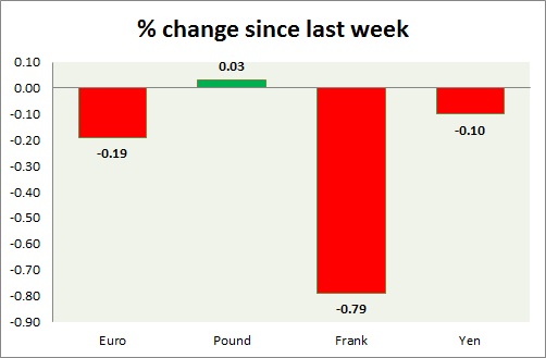 Strength meter (since last week) - Euro -0.19%, Franc -0.79%, Yen -0.10%, GBP +0.03%