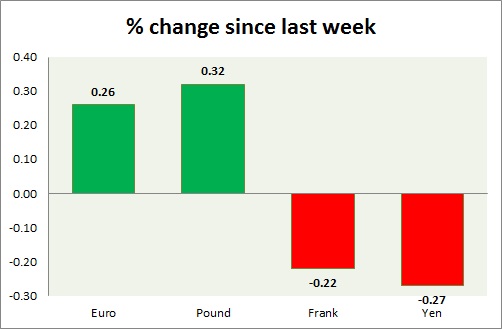 Strength meter (since last week) - Euro +0.26%, Franc -0.22%, Yen -0.27%, GBP +0.32%