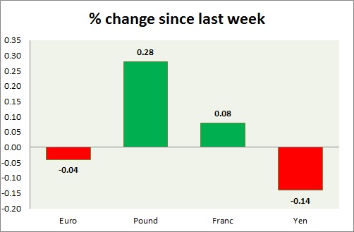 Strength meter (since last week) – Euro -0.04%, Franc +0.08%, Yen -0.14%, GBP +0.28%