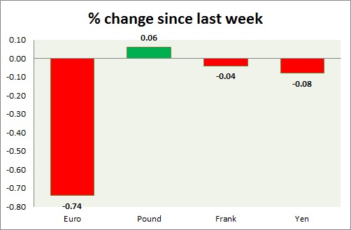Strength meter (since last week) - Euro -0.29%, Franc -0.11%, Yen -0.05%, GBP -0.35%