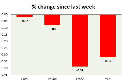 Strength meter (since last week) – Euro -0.02%, Franc -0.39%, Yen -0.32%, GBP -0.08%
