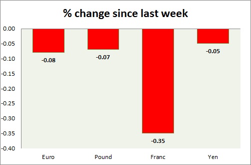 Strength meter (since last week) – Euro -0.08%, Franc -0.35%, Yen -0.05%, GBP -0.07%