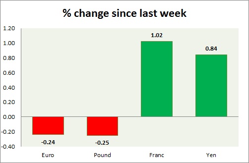 Strength meter (since last week) – Euro -0.24%, Franc +1.02%, Yen +0.84%, GBP -0.25%