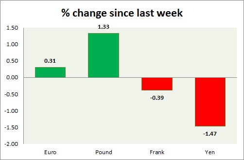 Strength meter (since last week) - Euro +0.31%, Franc -0.39%, Yen -1.47%, GBP +1.33%