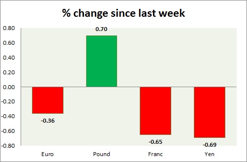Strength meter (since last week) – Euro -0.36%, Franc -0.65%, Yen -0.69%, GBP +0.70%