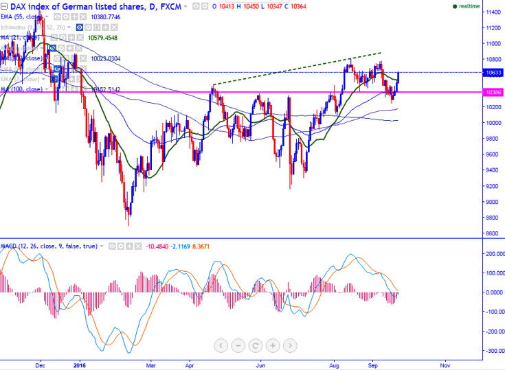 - In the daily chart any break above 21- day MA confirms minor trend reversal, a jump till 10806/10879 is possible.