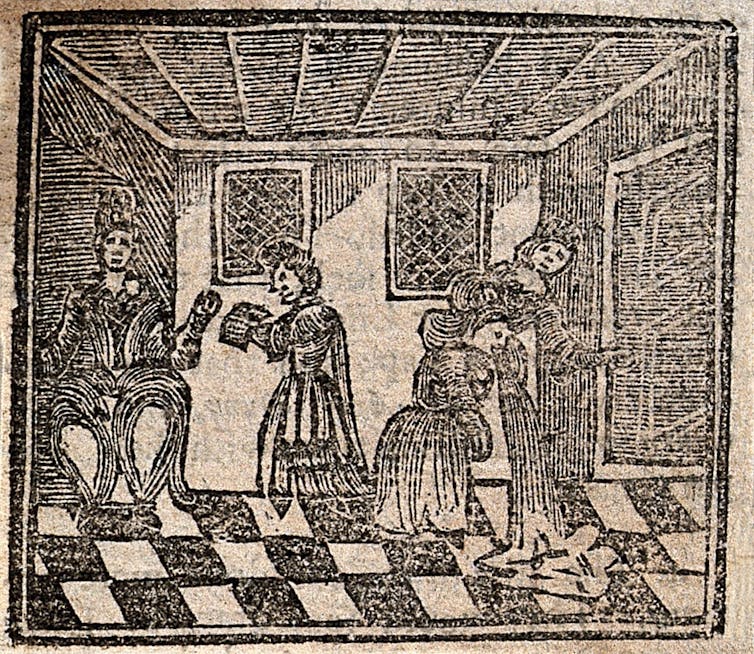 A bewitched woman vomiting. Woodcut, 1720. Wellcome Collection, CC BY