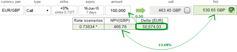 We recommend delta hedging below 1.1284 levels on EUR/USD ATM calls as they are well priced trading below 15% Net Present Value.