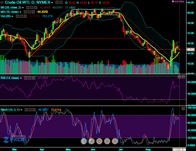 As per our forecasts, we all have seen last month that WTI crude oil futures (CL!1) extended its loses from last month's highs at around 59 levels to 47.44 in first stage and again below 42.22 levels (our 2nd target) and even upto 37.75 levels when we advocated shorting futures. Currently, on NYME, WTI crude oil futures for September delivery slumped 3.8 dollars from last week's highs to trade at $45.53 a barrel during Europe mid-day hours.