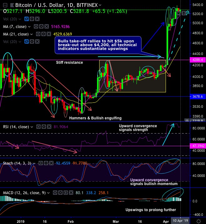 Bitcoin has been spiking higher from the last couple of weeks, rose from the lows of $3,405.30 levels to the recent highs of $5,373.90 after surpassing $5,250 levels (at Bitfinex).