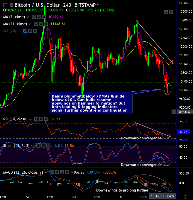 Technically, BTCUSD price, this month, has plunged below $10k and hit 9,855 levels, as the interim rallies are restrained below 7SMAs.
