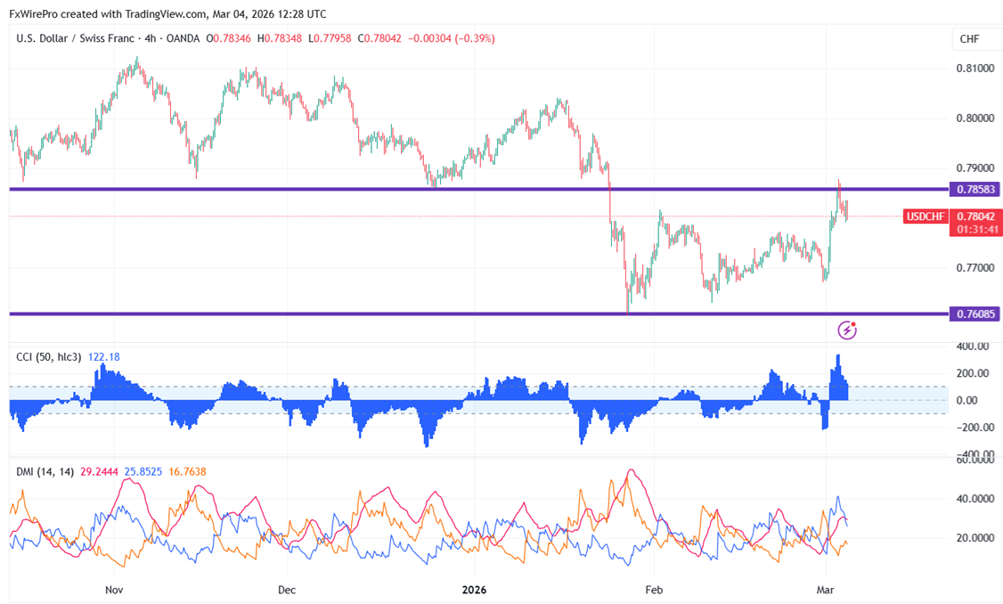 The pair is trading above the 55-EMA, 200-EMA, and 365-EMA on the 4-hour chart, indicating a bullish trend. The immediate resistance is at 0.7835; any break above targets 0.7865/0.7925/0.7965/0.8000.