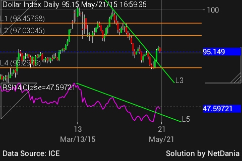 This week US dollar index, which is value of dollar against basket of currencies has broken above its month long down trend which saw the index drop from 100 mark to 93.2.