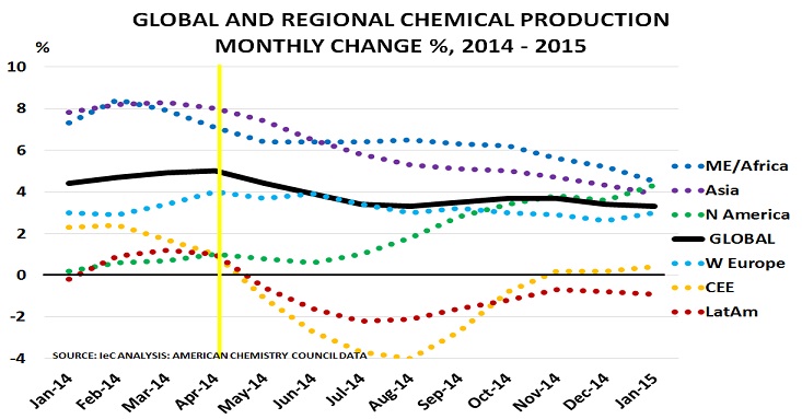 - In lot many ways, growth in chemical companies viz. production is a leading economic indicator and the current condition is expressed nicely in a chart from ICIS, a market intelligence provider in chemical and fertilizer industry.