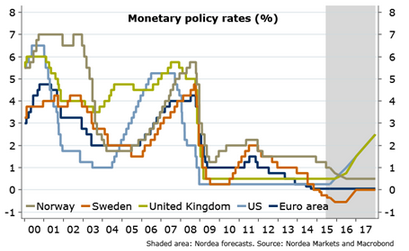 "A half-year extension of the programme combined with an additional tapering period looks like a rather good first guess of how the purchase programme could evolve beyond September 2016. We expect the main refi rate to remain unchanged at 0.05% over the forecast horizon and the deposit rate to stay unchanged at -0.20%. For the next few months, the risk to our no-change baseline call is tilted towards more stimulus from the ECB", says Nordea Bank.