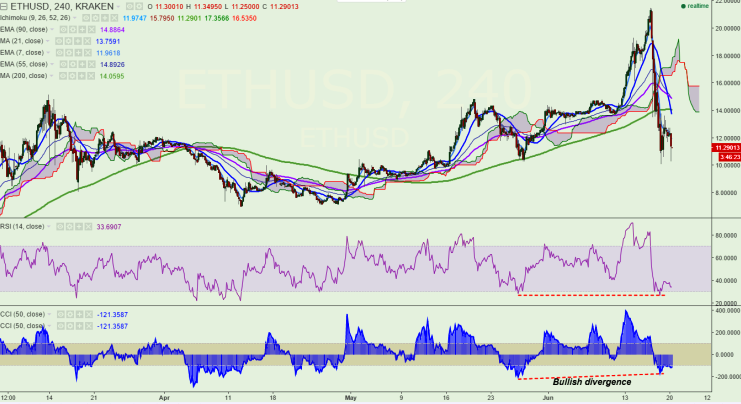 Following the massive plunge in ether price caused by The DAO hack, ETH/USD is struggling to find its upward momentum. The pair has taken support near $10 and started to recover from that level. It is currently trading at $11.08 levels (Kraken) at the time of writing.