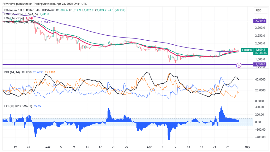 ETHUSD is consolidating after gaining more than 30% in past 3 weeks.It hits an high of $1857 previous week and currently trading around $1811.37.